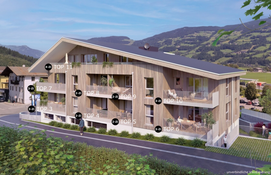 In zentraler und sonniger Lage realisierten wir in der Sennereistraße 1 in Fügen ein Wohn- und Geschäftshaus. Im Erdgeschoss entstand das Büro der Skiliftgesellschaft Hochfügen, in den Geschossen darüber die 9 Wohnungen. Die Erschließung der Liegenschaft erfolgt von der Bahnhofstraße (Haupteingang) und der Sennereistraße aus. Der Innenausbau der Wohnungen wird nach dem Verkauf individuell angepasst, sodass die Käuferin / der Käufer noch mitplanen kann – die Wohnung wird innerhalb weniger Wochen bezugsfertig sein.